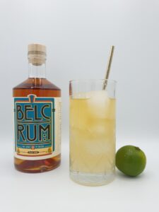 Bouw ‘m op! Ijs in een highballglas. Limoensap en BelcRum erbij. Aanvullen met gingerbeer.